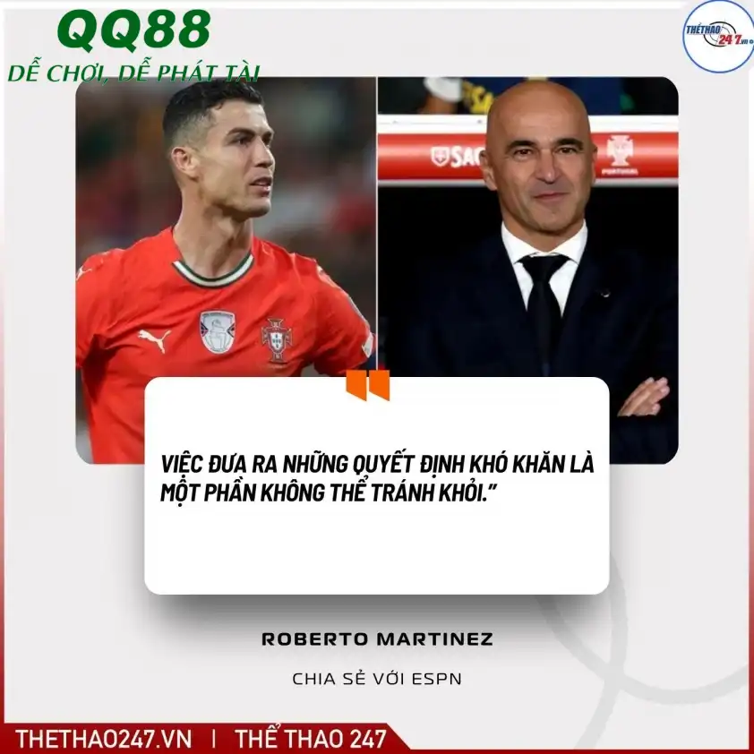 Trong một buổi trò chuyện với ESPN, khi được hỏi thẳng về khả năng để Ronaldo “lên ghế dự bị” tại World Cup, chiến lược gia người Tây Ban Nha đã có câu trả lời đầy ẩn ý: “Đó là một phần công việc của tôi. Tôi đã ở vị trí này suốt ba năm qua. Điều quan trọng nhất là đội bóng phải giành chiến thắng, phải mạnh hơn đối thủ. Đó là trách nhiệm của tôi cũng như ban huấn luyện. Việc đưa ra những quyết định khó khăn là một phần không thể tránh khỏi.” Câu nói này cho thấy Martinez đặt lợi ích tập thể lên hàng đầu, và không ngần ngại đưa ra những quyết định “đau tim” nếu cần thiết.
